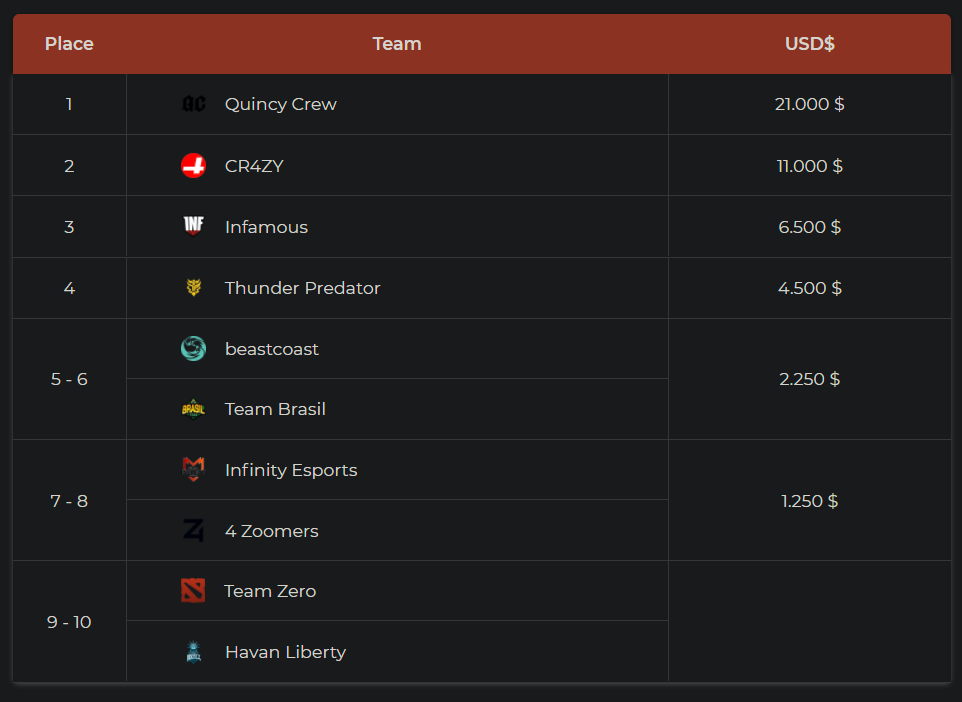 BTS Pro Series Season 3: Americas ended at night. ??Quincy Crew defeated ??CR4ZY with a 3:1 score in the grand final, earning $21,000 for the first place. This article contains the results of the tournament, as well as its statistics.